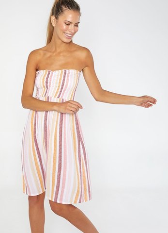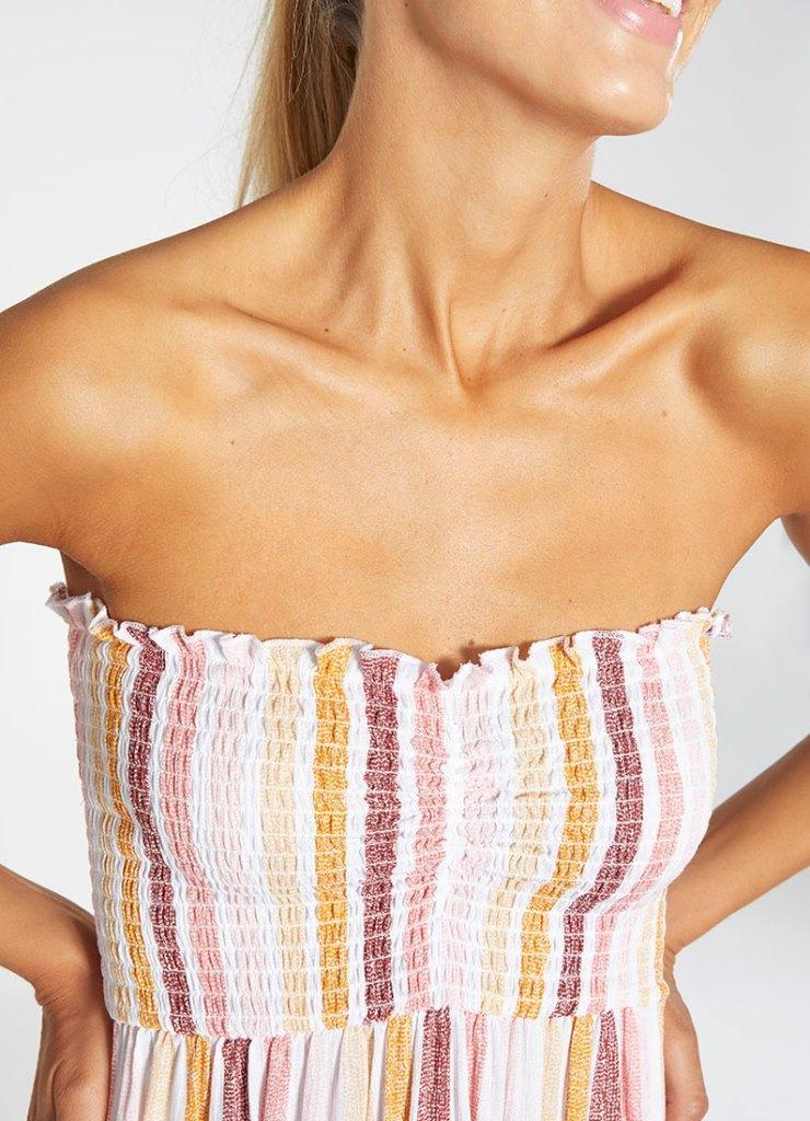 Широкий эластичный верх позволяет держаться платью без бретелей.