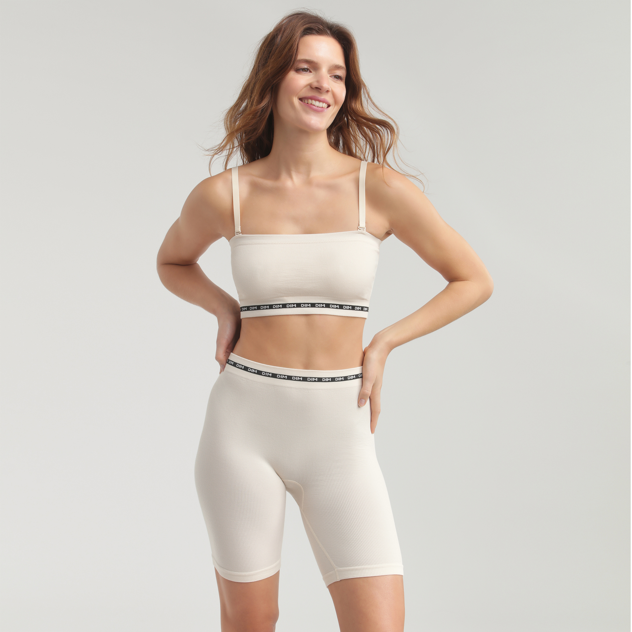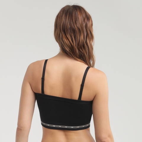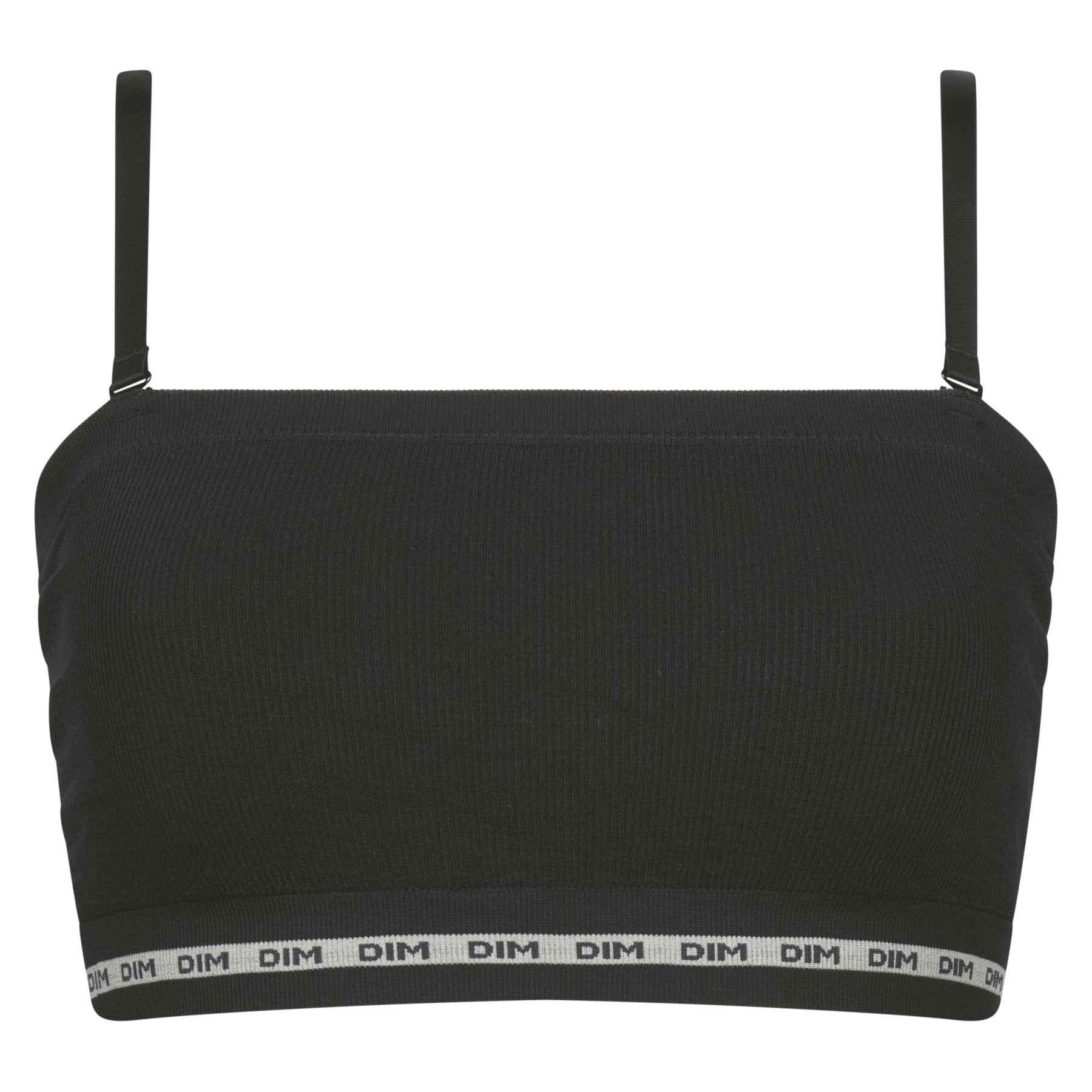Комфортный бесшовный бюстгальтер-бандо из микроволокна с отстегивающимися бретелями из линии DIM ICONS. Без чашек и каркасов. Для бюста небольшого размера. Контрастная брендированная лента придает бюстгальтеру спортивный вид. Бретели регулируются по длине.