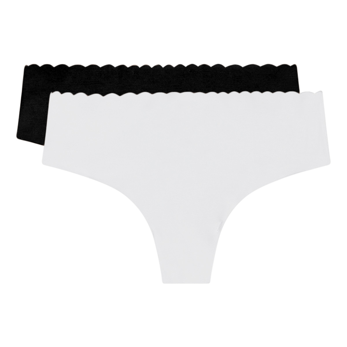 Бесшовные трусы-хипстеры из эластичного хлопкового полотна, сетом из 2-х штук. Линия талии декорирована обрезным фестончатым краем. Линейка Body Touch Cotton.