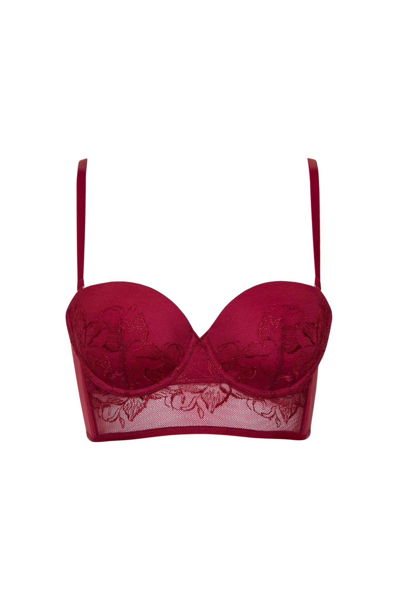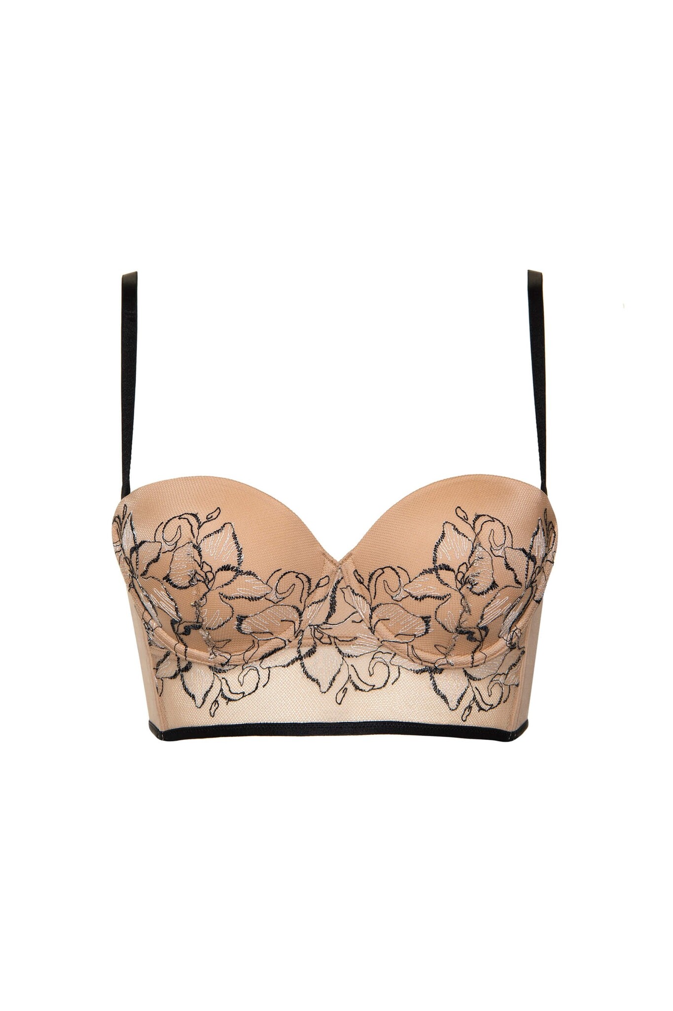 -     модная модель с роскошной вышивкой на чашках, слегка удлиненная форма бюстгальтера