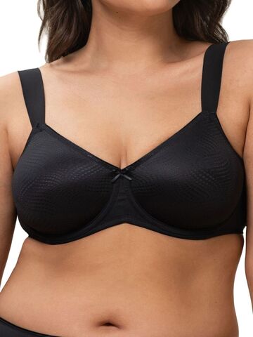 Бюстгальтер-минимайзер Essential Minimizer W X от Triumph с мягкими чашками на каркасах из комфортного микроволокна оптически уменьшает полноту бюста. Широкие бретели комфортно ложатся на плечи и регулируются по длине на спинке.