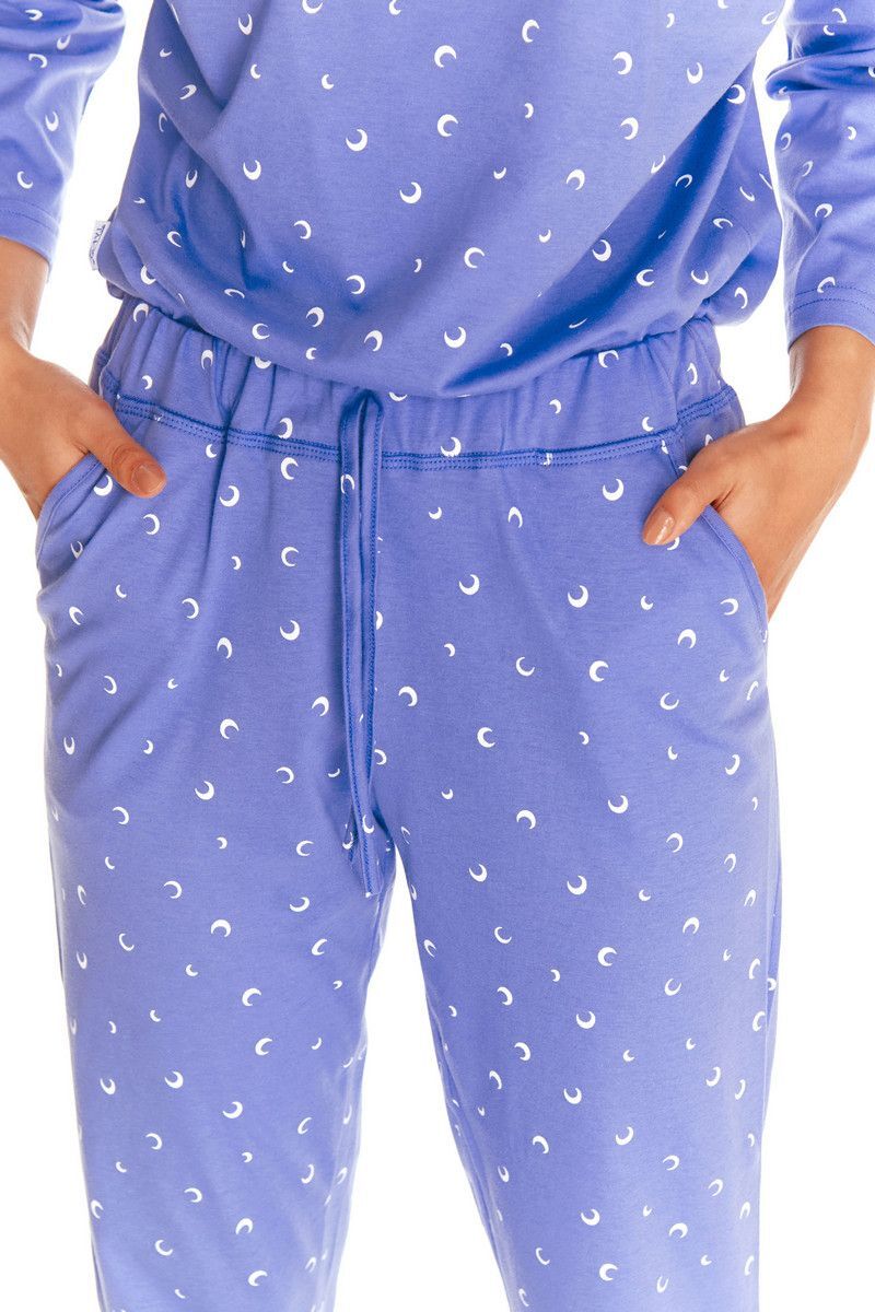 Милая уютная пижама в двух расцветках. Удобные брюки с карманами на шнуровке. Лунный принт создаст приятное ощущение присутствия неба и романтики.