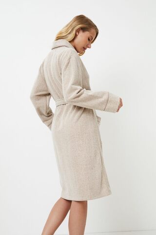 Представляем вашему вниманию халат Marianna, который станет вашим уютным спутником для стильного времяпрепровождения! Длинные рукава и длина выше колен создают ощущение теплых объятий вашего любимого плюшевого мишки. Этот светло-коричневый халат с завязками для плотного прилегания и удобными карманами - ваш верный путь к полному расслаблению. А для придания элегантности вырез украшен изящной окантовкой. Так что вперед, укутывайтесь и наслаждайтесь заслуженным комфортом в халате Marianna!