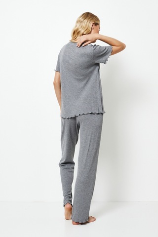 Ищете что-то элегантное, но в то же время удобное? Длинный комплект Jasmine - идеальный выбор для вас. Он изготовлен из мягкой трикотажной вискозной ткани в рубчик, обеспечивающей уютную, но дышащую посадку. Футболка с короткими рукавами, мягким округлым вырезом горловины и восхитительными оборками как на рукавах, так и по низу, придающими изделию женственный вид. Комплект дополнен брюками с гибким эластичным поясом и регулируемыми завязками для индивидуальной посадки, а также оборками в тон по низу, гармонично отражающими стиль верха.