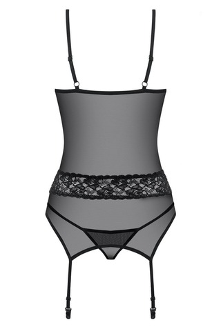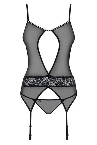 Новинка в уникальном дизайне! Корсет 812, от европейского производителя Obsessive. Сексуальный разрез спереди, регулируемые бретели и застежки. Красивый жемчуг (бижутерия) на декольте добавляет очарования. Сексуальная кружевная вставка на поясе. Стринги включены в комлект поставки. Эластичные и качественные ткани. Рекомендуем использовать с чулками Obsessive 812 (приобретается отдельно).
