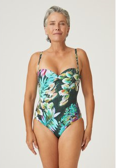 Купальник слитный Naturana c лифом в виде бандо. Уплотненные чашки на каркасах. Бретели регулируются по длине на спинке и отстегиваются с возможностью перекрещивания.