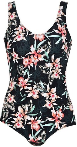 Моделирующий купальный костюм Naturana с эффектным цветочным принтом. Корсажный подклад в передней части купальника мjделирует зону живота. Уплотненные чашки и комфортная эластичная лента под грудью отлично поддерживают грудь. Широкие бретели комфортно ложатся на плечи. Регулировка бретелей отсутствует.