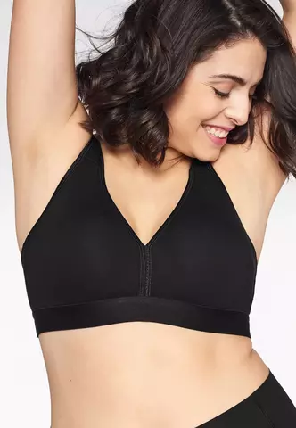 Комфортный бескаркасный бюстгальтер для спорта и отдыха из эластичного хлопкового полотна. Гладкие бесшовный чашки с внутренними боковыми поддерживающими вставками. Широкие неэластичные бретели на мягкой подкладке становятся эластичными на спинке и регулируются. Высокое соединение чашек и широкая резинка под грудью. Расширенные боковые панели и U-образный вырез спинки. Оптимальные поддержка и комфорт каждый день!