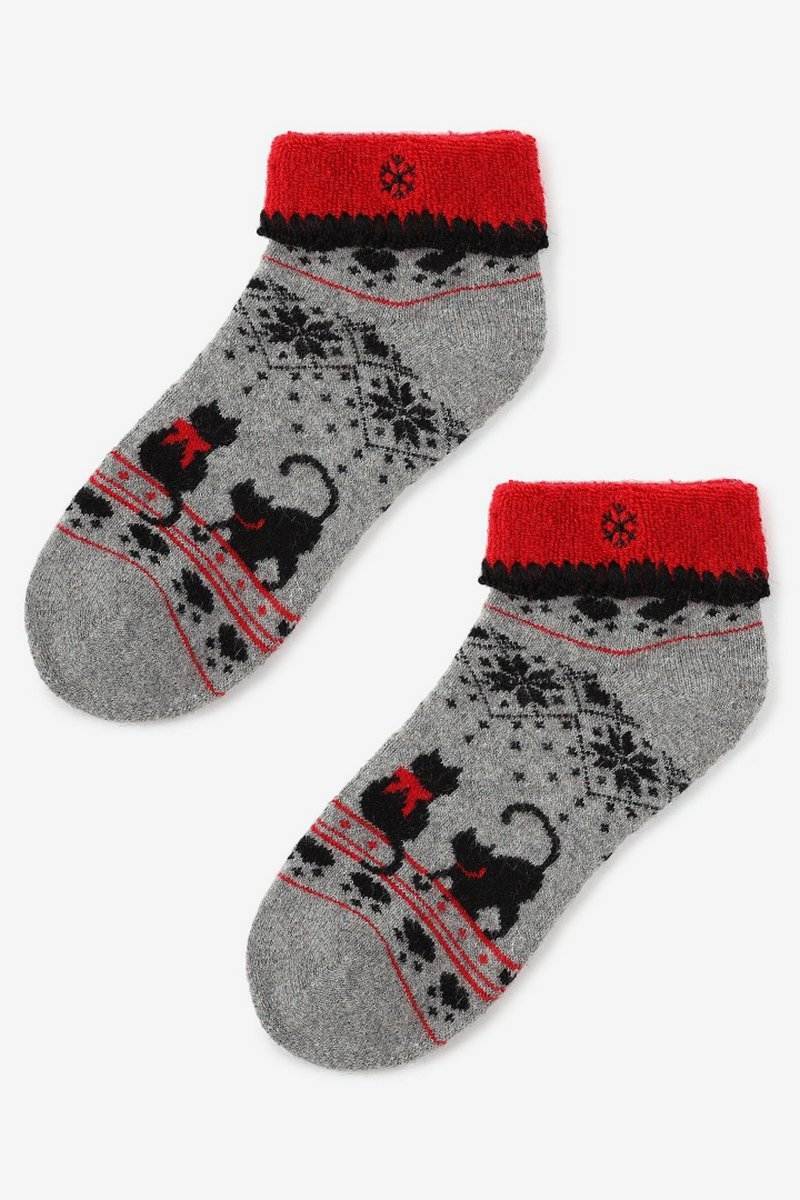 Теплые низкие женские носки с рисунком кошки. Изготовлен из высококачественной пряжи. Носки мягкие и удобные. Идеально подходит для холодного зимнего времени.