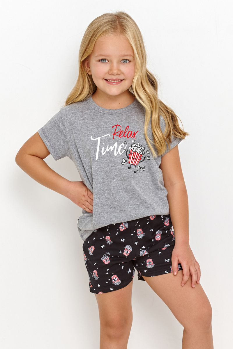 Пижама для девочек с шортами RELAX от европейского производителя Taro. В комплекте футболка с нагрудным принтом и узорные шортики на резинке. Принт в мотиве попкорна.