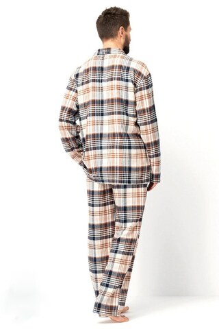 Классическая мужская фланелевая пижама. Теплая и удивительно приятная на ощупь фланелевая ткань согреет ваше тело холодными зимними вечерами. Натуральная фланель поддерживает здоровье осенью и зимой. 100% высококачественные хлопковые волокна в сочетании с правильной строчкой и нитками обеспечивают прочное и долговечное использование. Классический крой, который можно застегнуть на шее. Декоративный карман на груди. Классические брюки прямого покроя, штанины на талии имеют удобную, мягкую резинку. Глубокие карманы по бокам. Вечная элегантная пижама! Мягкая, дающая свободу вашему телу, обеспечивает спокойный, комфортный сон.