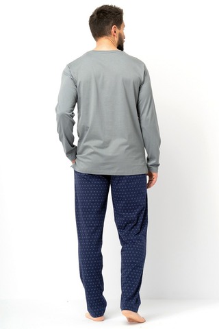 Всесезонная мужская пижама классического кроя. Изготовлено полностью из мягкого, высококачественного хлопкового трикотажа, который обеспечивает комфорт, свободу движений и долговечность. Классический крой верха и низа. Лонгслив с круглым вырезом и мультяшным изображением скачущей лошади. Гладкие брюки слегка зауженного кроя имеют удобный, мягкий эластичный пояс. Брюки из 100% хлопка. Удобные брюки прямого кроя с мягкой резинкой и шнурком на талии. Глубокие карманы по бокам. Высококачественные волокна 100% хлопка в сочетании с правильной строчкой и нитками гарантируют исключительную долговечность и позволяют пижаме сохранять форму в течение длительного времени. Мягкий и приятный на ощупь хлопок — идеальный выбор для любого сезона.