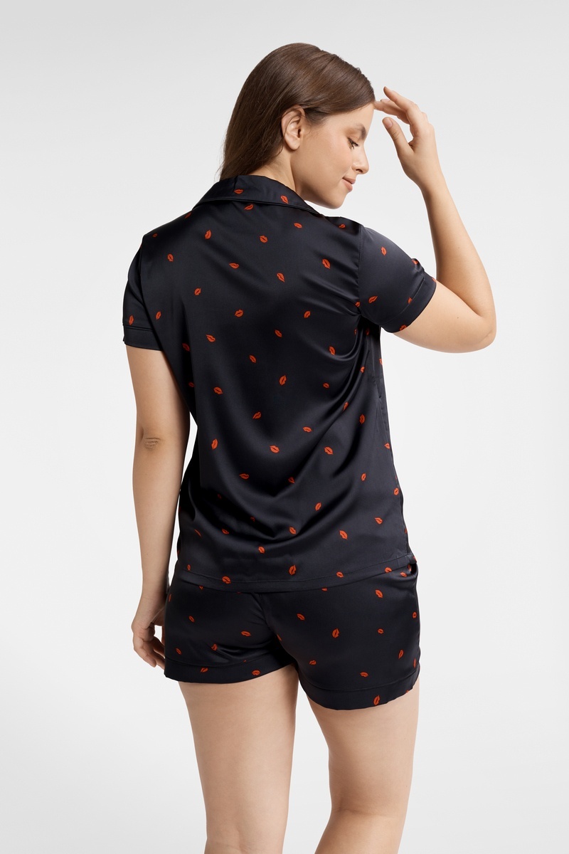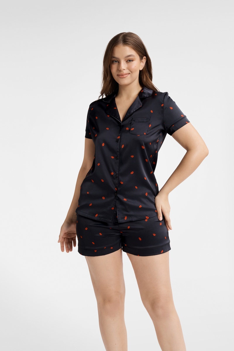 Пижама женская с шортами CALINA. Рубашка на пуговицах, с короткими рукавами и нагрудным карманом комплектуется шортами на эластичной резинке.