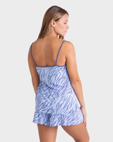 Женская пижама, состоящая из майки со шнуровкой. Шорты с регулируемой талией и рюшами.