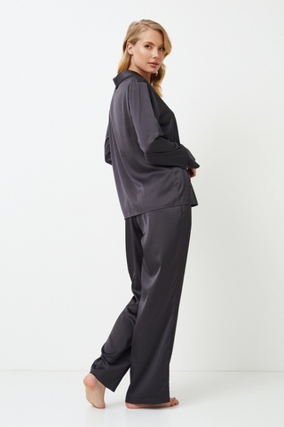 Представляем длинную пижаму Agatha - темный и смелый выбор для тех, кто предпочитает минимализм. Рубашка с длинными рукавами застегивается спереди на пуговицы и имеет соблазнительный округлый V-образный вырез горловины, а широкие брюки с карманами и тонким регулируемым поясом придают комплекту элегантности. Комплект украшен черной окантовкой по краям. Пижама изготовлена из блестящей плотной темно-серой ткани в мелкий черный горошек, которая создает ауру элегантности и гламура, идеально подходящую для тех, кто любит выделяться даже в ночной тишине. Раскройте свою внутреннюю драму с длинной пижамой Agatha.