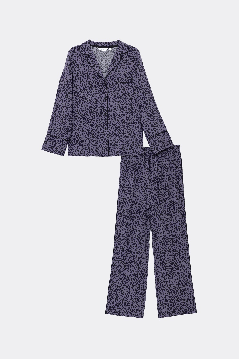 Пижама женская со штанами ALIX для вашего ночного комфорта. Пижама выполнена из вискозы. Рубашка на пуговицах, с длинными рукавами, отложным воротником и нагрудным карманом. Окантовка дополняет и украшает комплект. Штаны свободные, с эластичным поясом с завязкой. Расслабьтесь с максимальным комфортом и стилем в пижаме ALIX.
