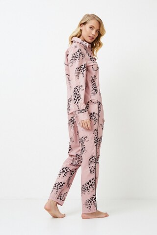 Представляем вашему вниманию длинную пижаму Brenda, в которой сон превращается в увлекательное приключение. В комплект входит легкая хлопковая рубашка с воротником-стойкой и длинными рукавами, застегивающаяся на пуговицы. Нагрудный карман украшен кантом, который является очаровательной деталью. Пижама выполнена в очаровательном розовом цвете, украшенном игривыми тиграми в сердечках. Брюки в тон завязываются на талии, имеют карманы и черную окантовку по бокам. Приготовьтесь ко сну в пижаме Brenda, которая превратит каждую ночь в веселое приключение. Изделие выполнено из текстильного хлопка.
