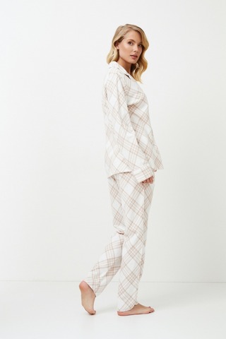 Длинная пижама Camille - это вечная классика мягких оттенков. Пижама выполнена из мягкого хлопка в спокойную белую, бежевую и розовую клетку. Топ с длинными рукавами и застежкой на пуговицы, V-образным вырезом горловины и изящной вышивкой "Мечта" на спине придает изделию утонченную элегантность. Брюки классического кроя с удобными боковыми карманами. Они завязываются на талии нежным розовым бантом. Воротник рубашки, манжеты рукавов и боковые стороны брюк украшены кантом. Наденьте пижаму Camille long для спокойного и стильного ночного отдыха. Изделие выполнено из хлопковой фланели.
