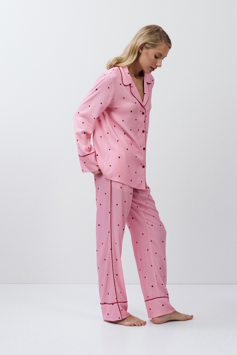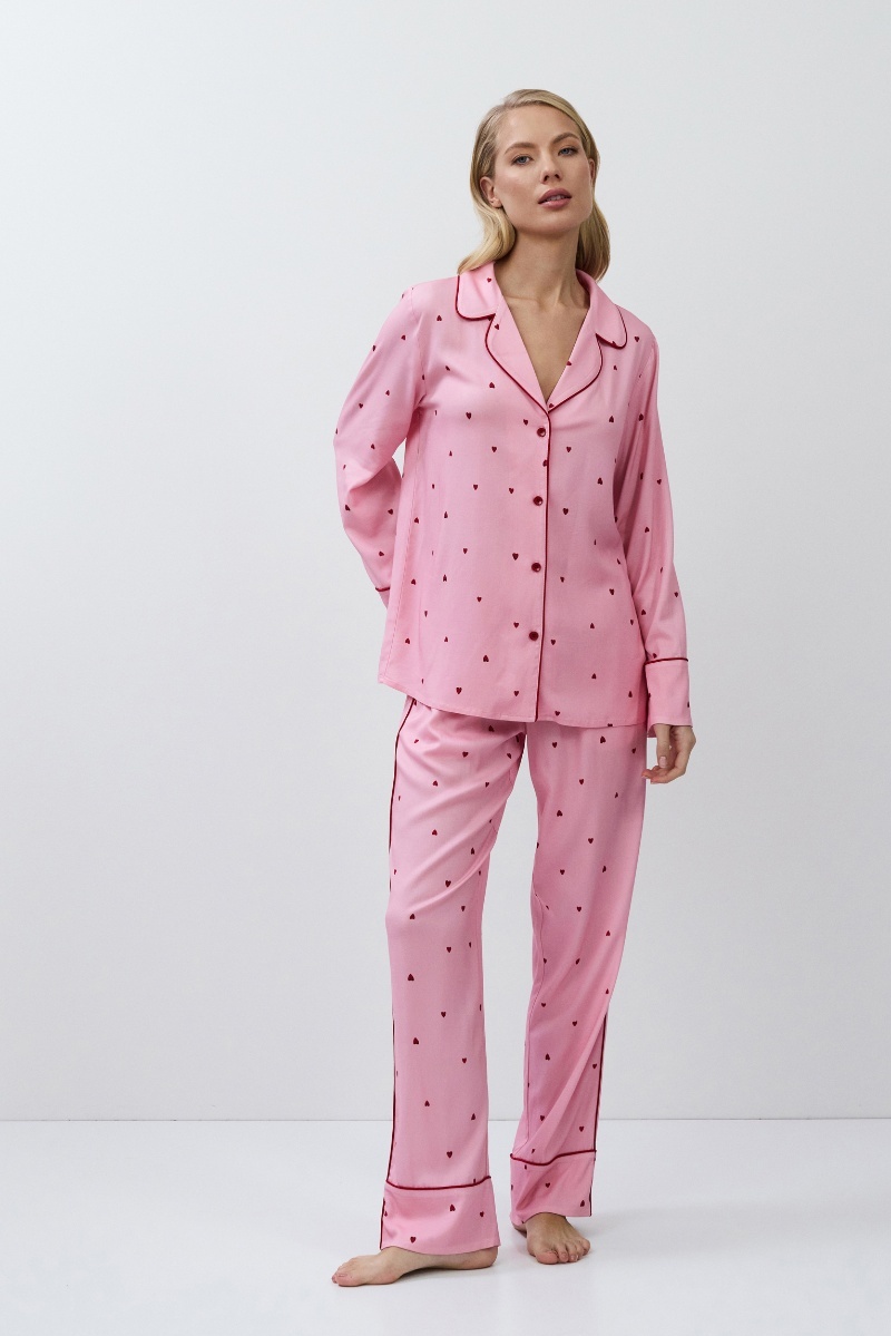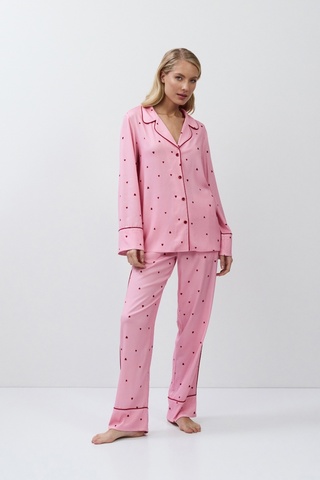 Пижама женская со штанами CHERIE для вашего ночного комфорта. Пижама выполнена из эластичной вискозы. Рубашка на пуговицах, с длинными рукавами, отложным воротником. Окантовка придаёт изделию особую изысканность. Штаны свободные, с эластичным поясом. Расслабьтесь с максимальным комфортом и стилем в пижаме CHERIE.