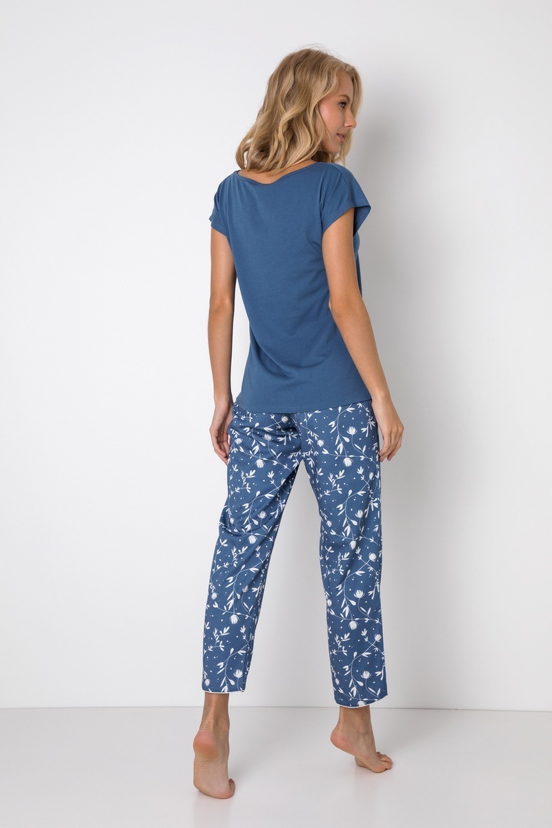 Обновите свою ночную одежду с помощью этих удобных хлопчатобумажных пижам из модала. Топ с глубоким V-образным вырезом спереди и сзади украшен нежными кружевными деталями. Пижамный топ и брюки украшены боковыми разрезами внизу. Брюки в цветочек с кантом по краю внизу, эластичной талией и регулируемым бантом на талии.