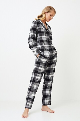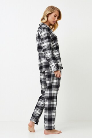 Представляем вашему вниманию длинную пижаму Joan, которая станет незаменимым аксессуаром для прохладных ночей. Пижамный комплект выполнен из фланелевого хлопка в вечную черно-белую клетку. Рубашка с длинными рукавами на пуговицах, стильным v-образным вырезом, нагрудным карманом и манжетами на рукавах, украшенными кантом. Сочетается с брюками классического кроя, завязывающимися на талии, с удобными карманами, элегантной окантовкой по бокам и атласной лентой на талии в тон. Идеально подходит для создания классической зимней атмосферы в свежей цветовой палитре. Не забудьте о комфорте своей второй половинки – возьмите с собой пижаму James pajama long, потому что прижиматься друг к другу вдвойне приятнее! Изделие выполнено из хлопковой фланели.