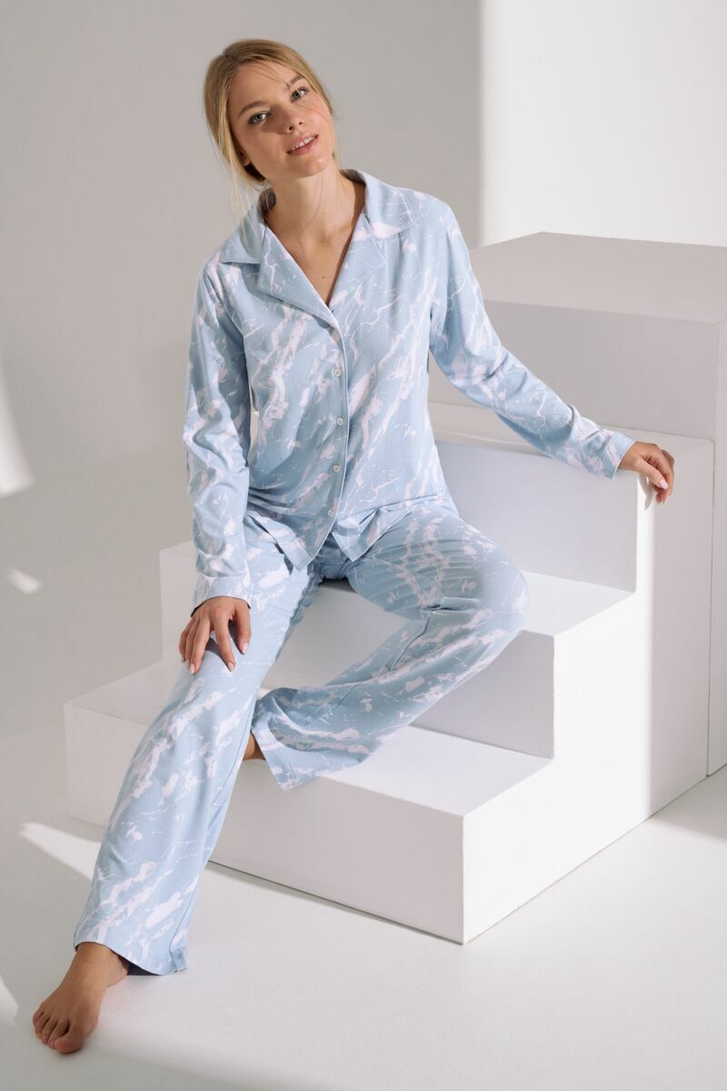 • Пижама с рубашкой с длинными рукавами и длинными штанами.