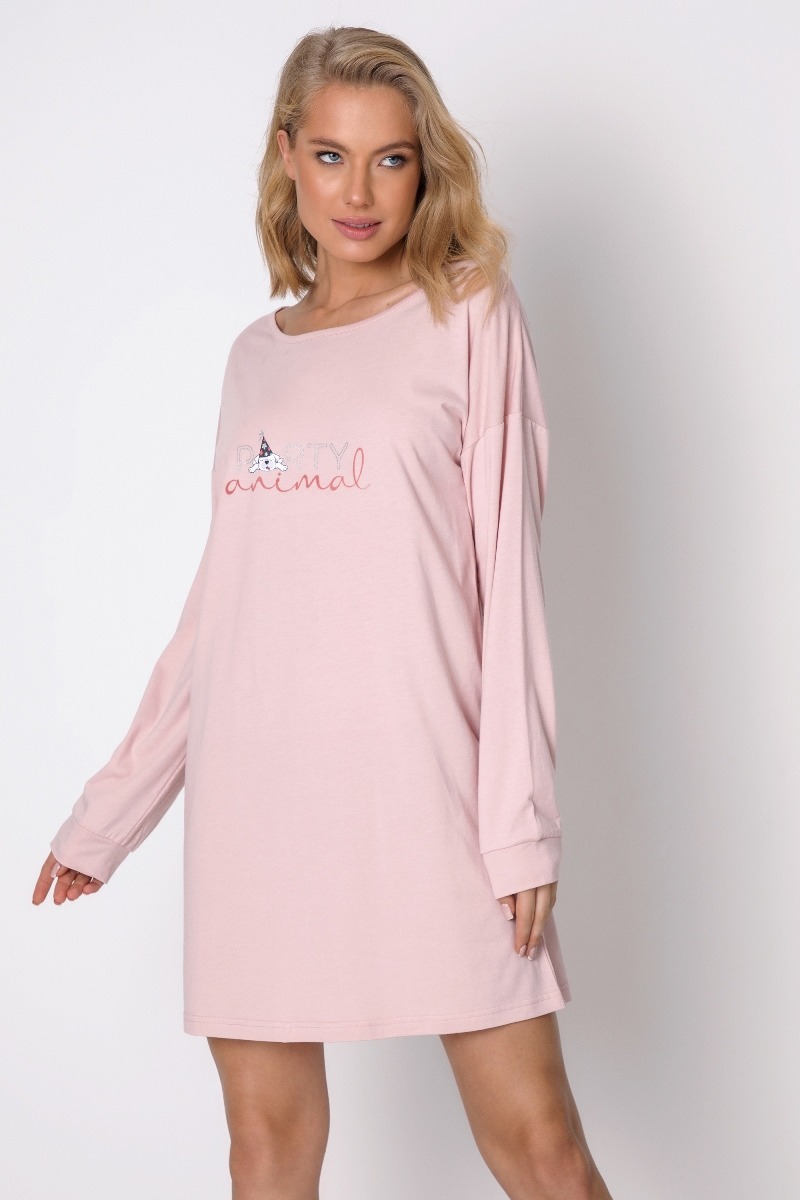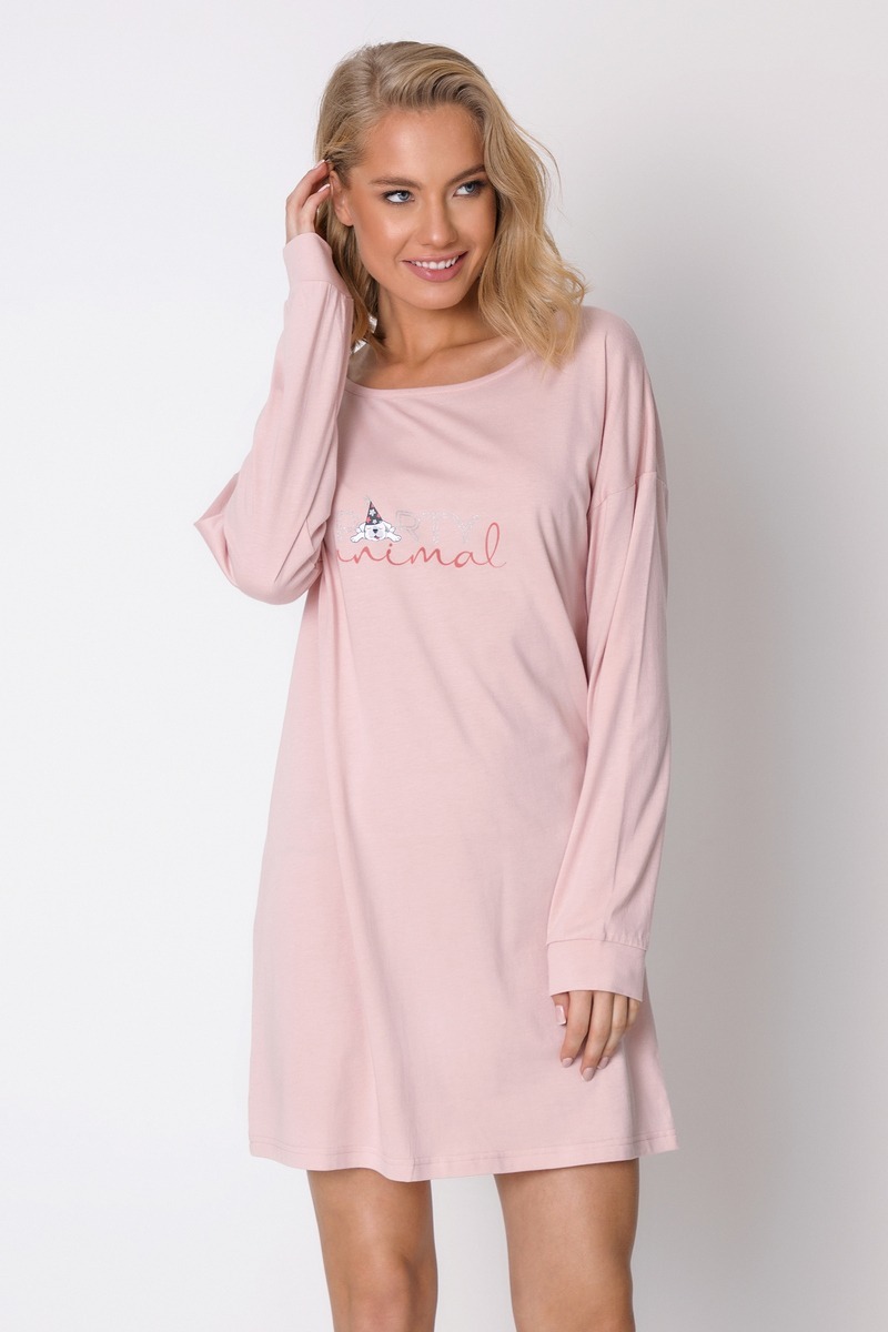 Сорочка женская с длинными рукавами на манжетах. Сорочка декорирована нагрудным принтом. Длина - выше колен.