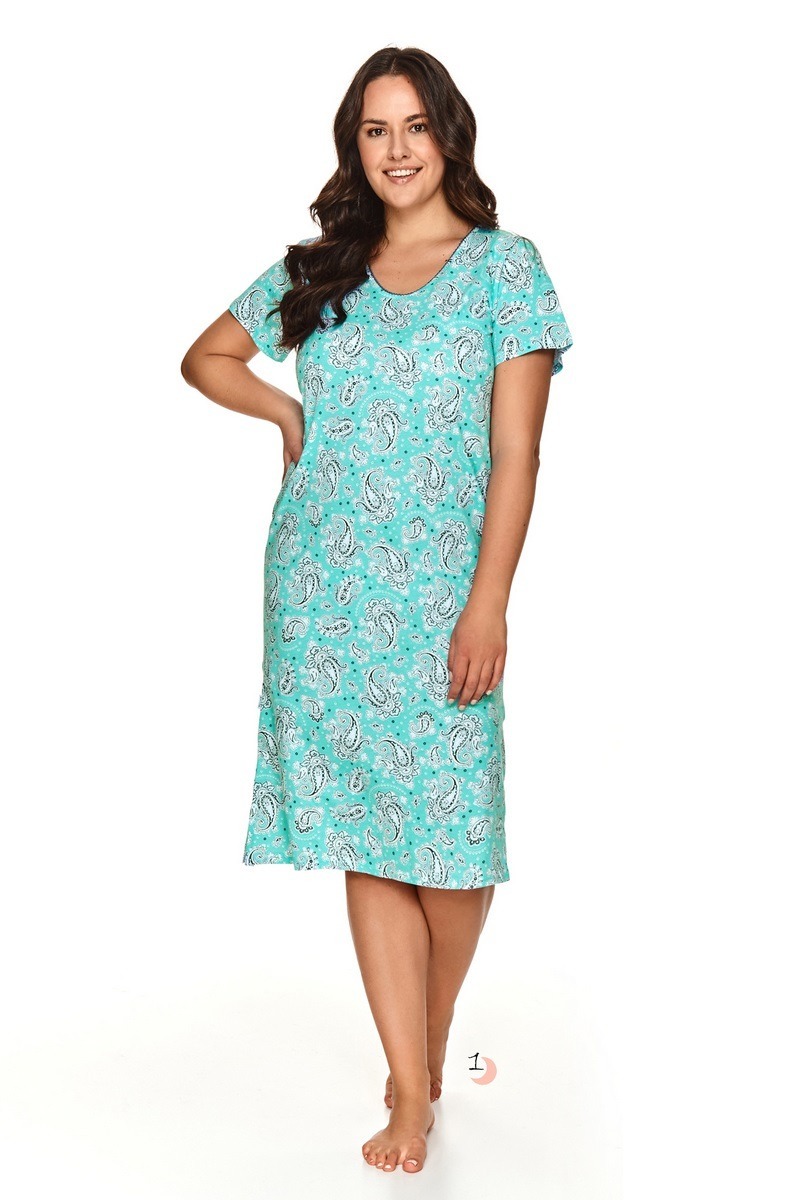 Уютная хлопковая модель классического кроя с коротким рукавом и двумя боковыми разрезами.