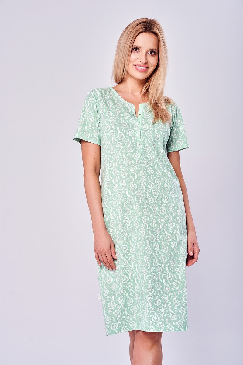 Женская сорочка GLORIA от европейского производителя Taro. Изделие в нежном мятном цвете с оригинальным принтом. На груди планка из пуговиц.