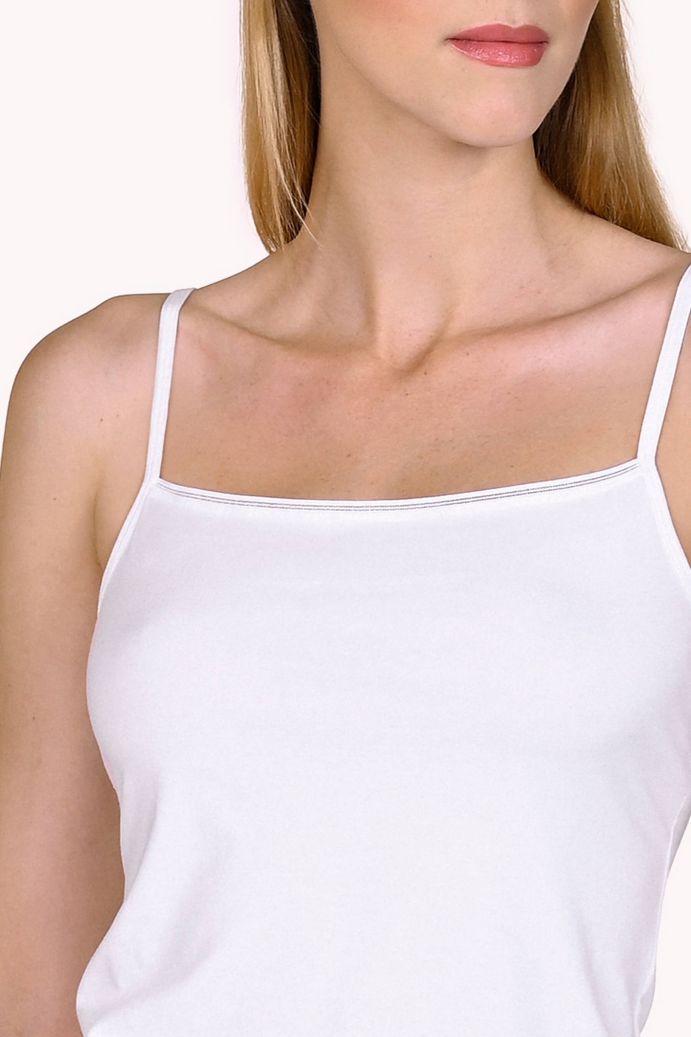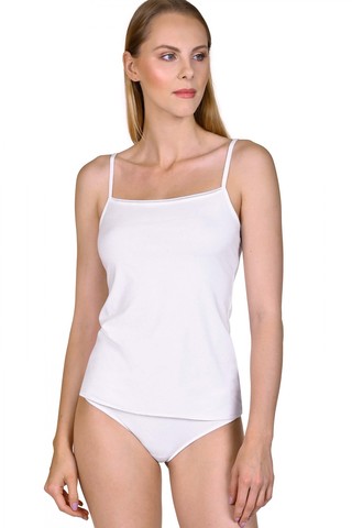 Топ на узких бретелях - хороший вариант для любителей натуральных волокон - сочетание хлопка и модала удобное и мягкое.