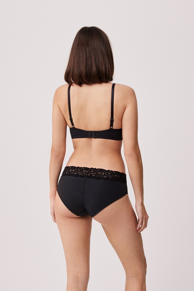 Хлопковые трусы слипы средней посадки с широким боком. Пояс трусиков кружевной.